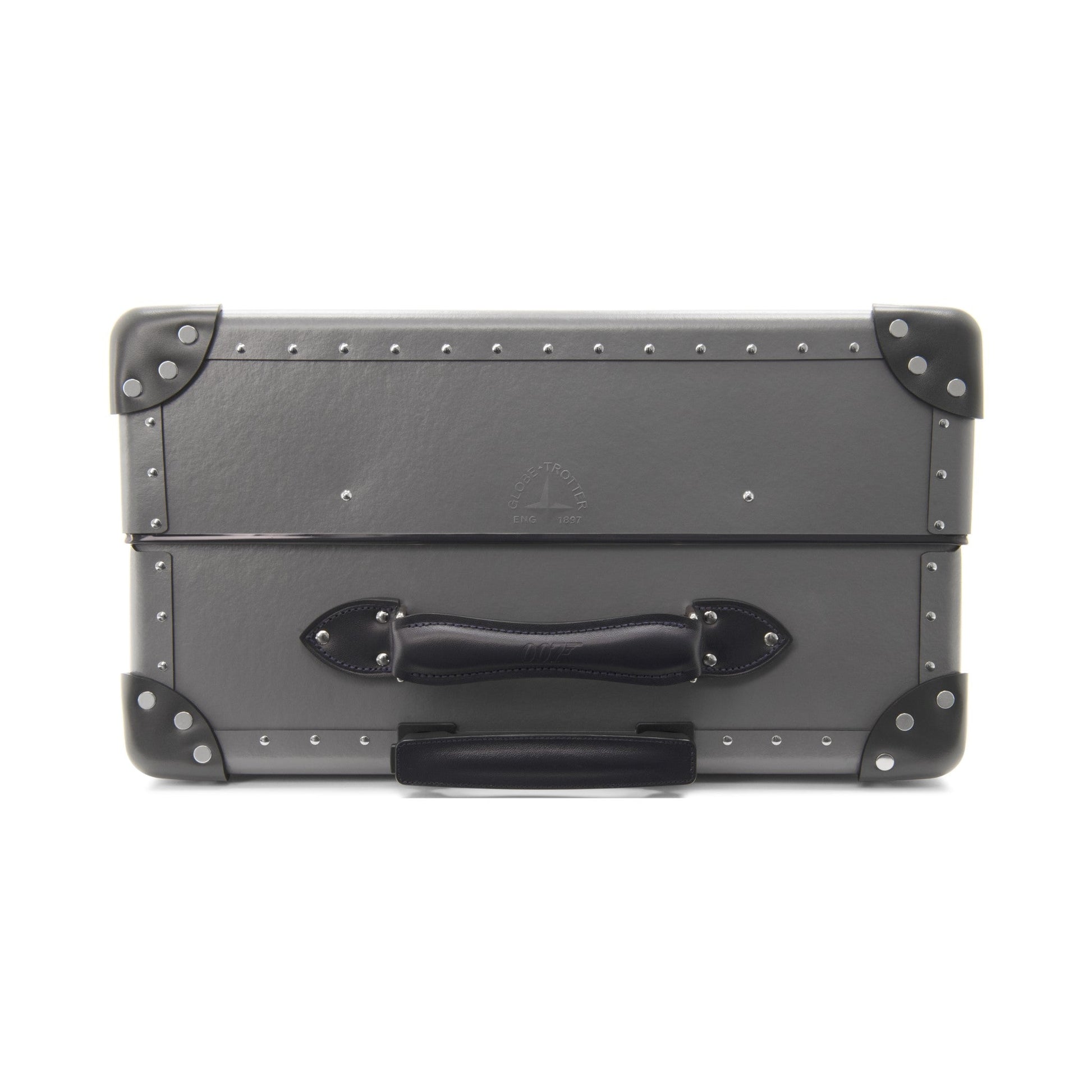 Each case displays the 007 logo on the exterior in the form of a branded plaque fixed between the side handle as well as an embossing across each leather top handle.