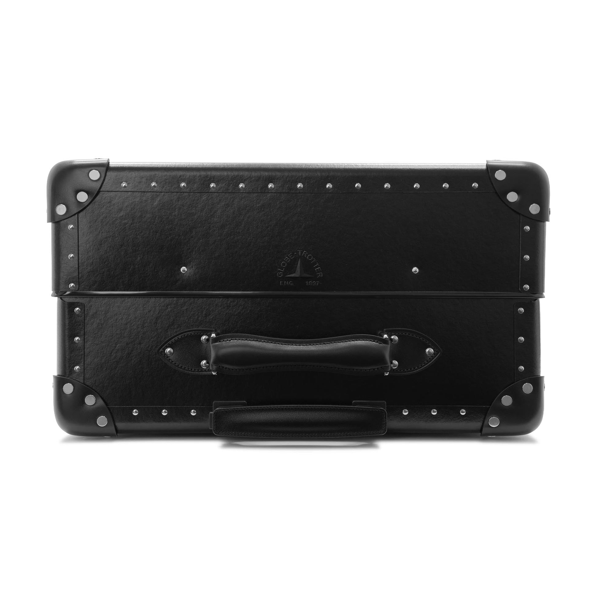 Handcrafted in England from our signature vulcanised fibreboard, the case is both lightweight and remarkably strong. The Black exterior is complemented by hand finished Black leather corners and chrome fittings, creating a clean and understated aesthetic suited to modern travel. The taller, slimmer profile enhances the elegance of the design while maintaining practical balance and durability.