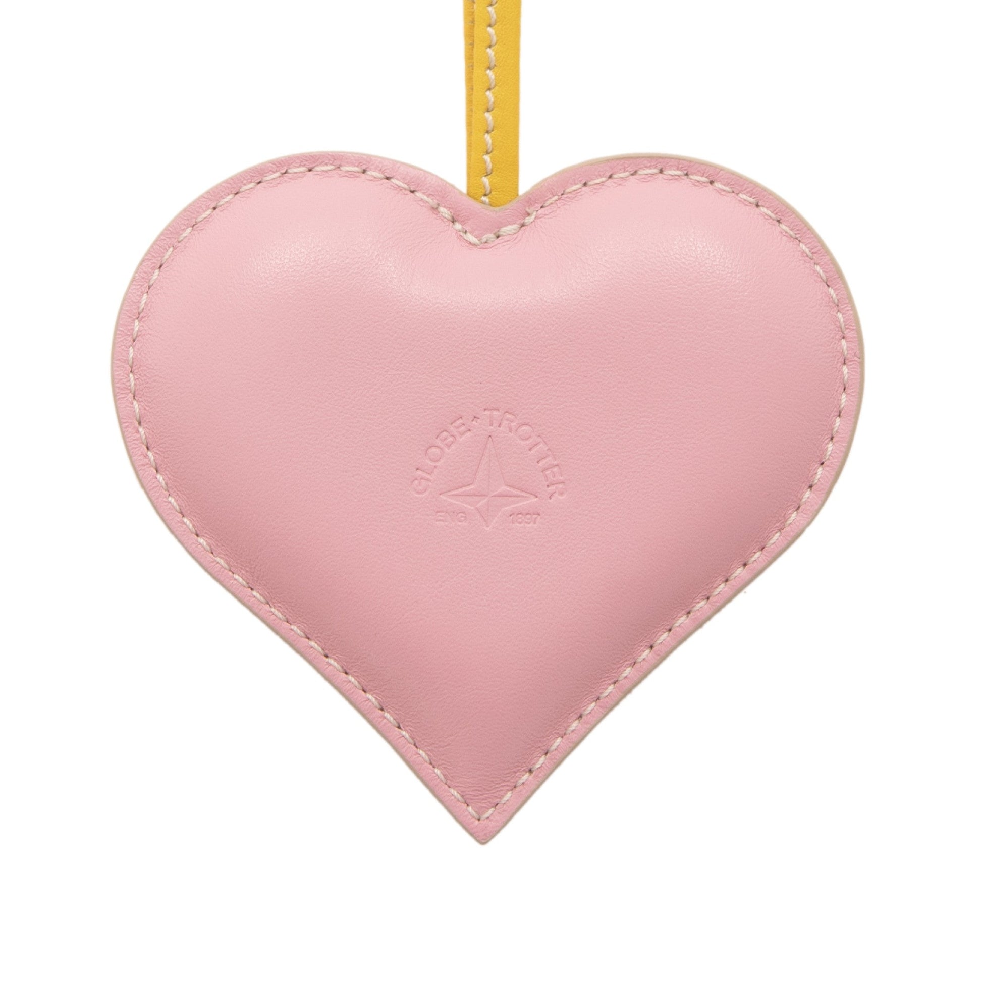 This heart-shaped cushion charm showcases an elegant embossed design of Elephant John, Globe-Trotter’s iconic mascot, adding a touch of charm and character to your travels.