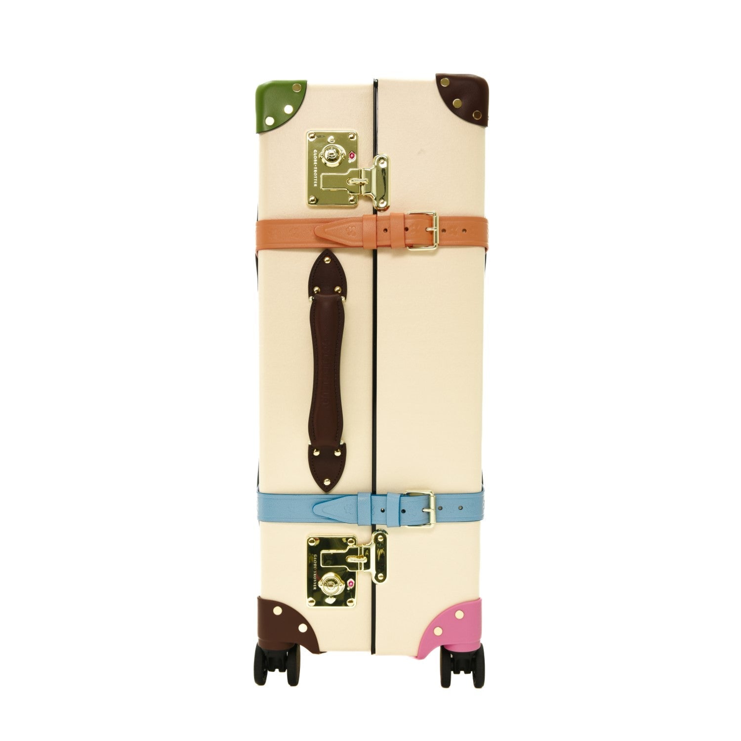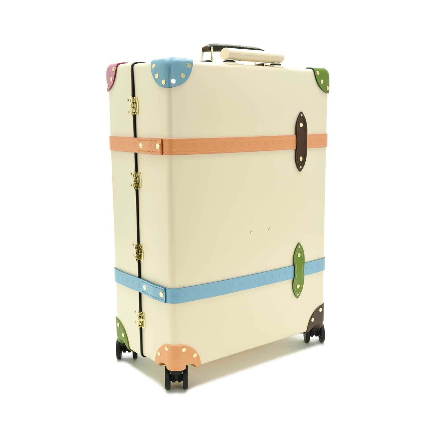 Each case is made from Globe-Trotter’s proprietary Vulcanised Fibreboard, composed of 14 layers of recycled paper, cotton, and wood pulp from sustainable forests. The layers are bonded with zinc and compressed using steam and pressure. This results in a material that is exceptionally lightweight and strong, offering durability for a lifetime of travel while remaining easy to carry. We use this material for its unique balance of strength and lightness, which is exclusive to Globe-Trotter.