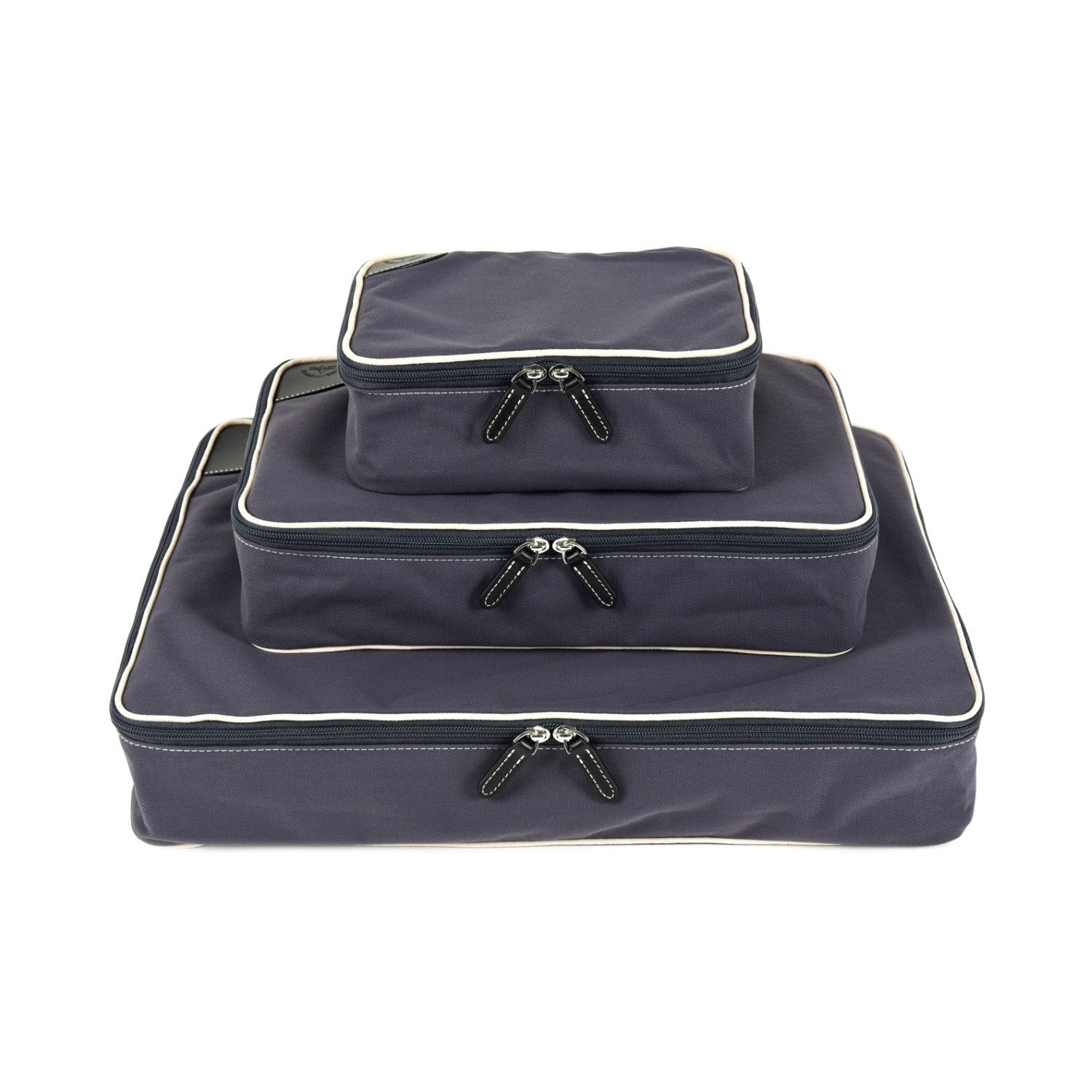 Packing Cubes are finished with neatly bound edges and subtle Globe-Trotter branding, offering a refined and functional appearance.