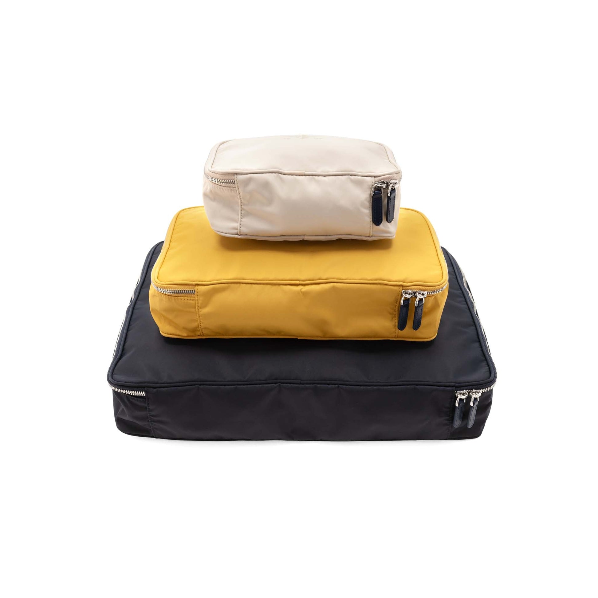 A subtle top handle adds ease when unpacking, and each cube nests intuitively within your suitcase for a clean and modular interior.