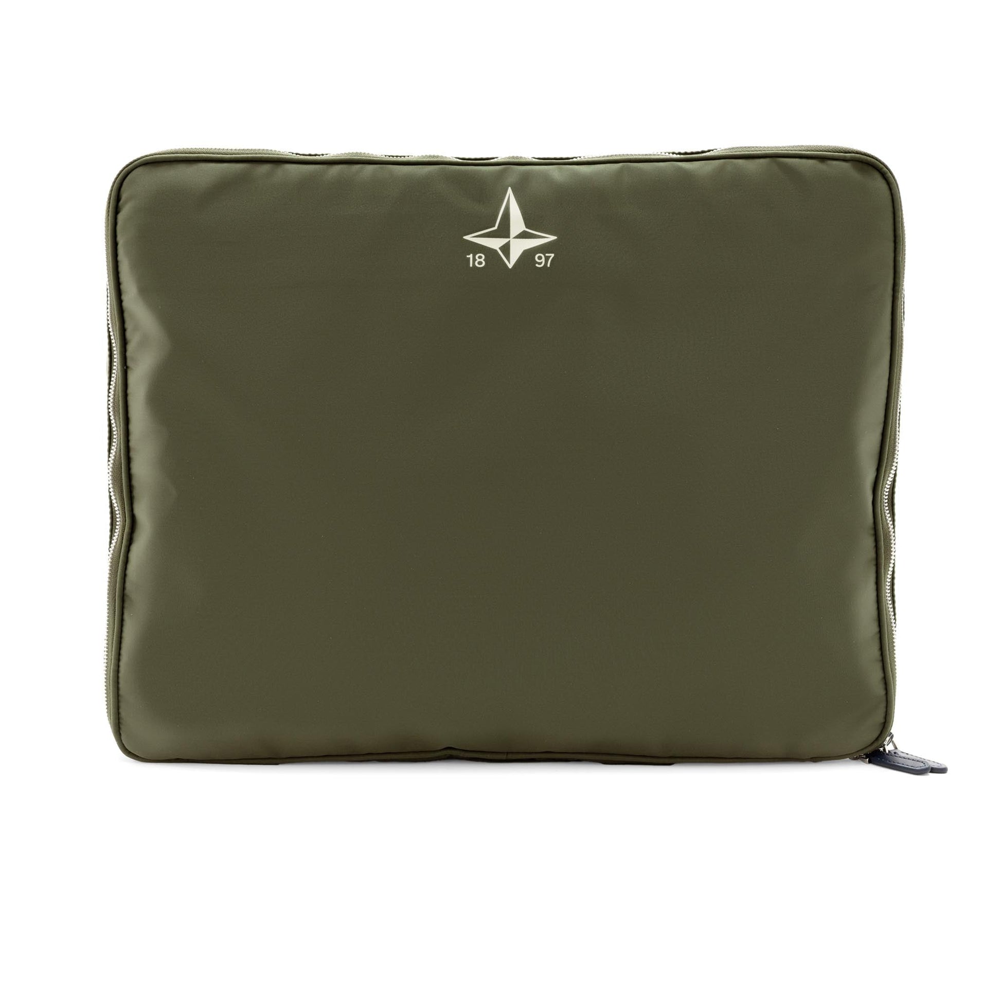 The Large Packing Cube in Olive adds quiet utility to longer journeys. Its structured interior keeps larger garments or grouped items neatly in place.