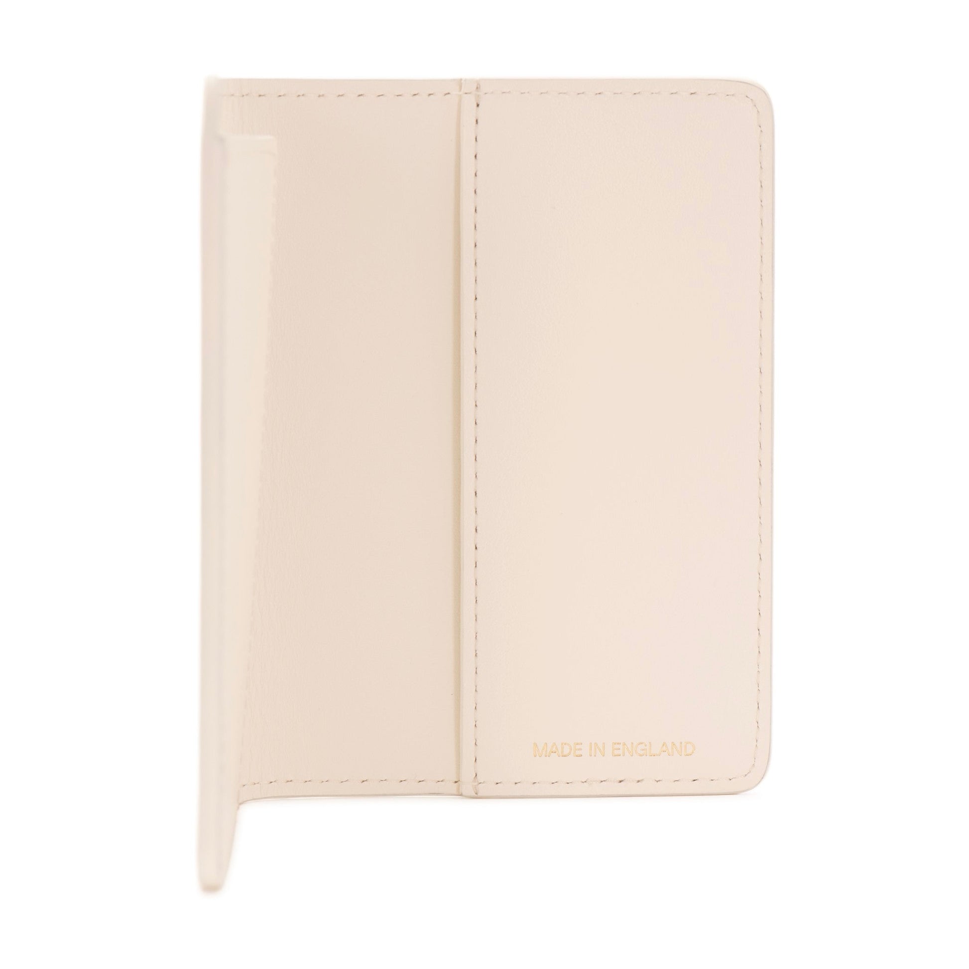 The Passport Sleeve in Ivory embodies refinement with a light, contemporary touch. Crafted in England from premium leather, the pale tone offers a subtle sophistication that will evolve into a warmer hue as it acquires a natural patina.